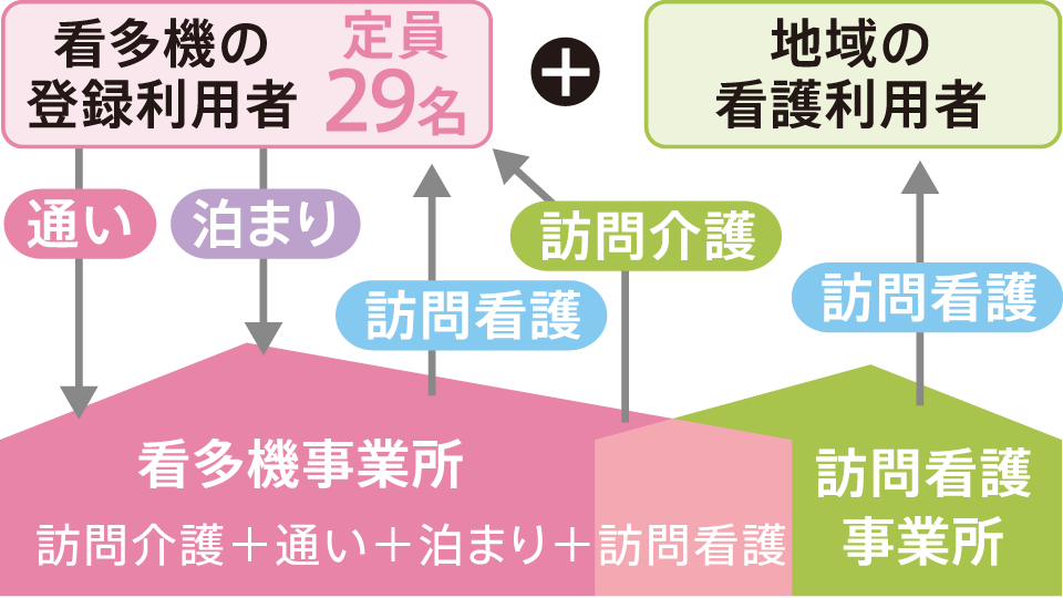 通所・宿泊のサービスと、訪問介護・訪問看護のサービスを組み合わせることで、